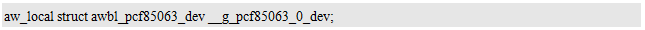 设备驱动相当于定义了一个类,而具体的设备相当于这个类的一个实例,显然,实例需要占用一定的内存空间。而在AWBus-lite中,并不使用动态内存分配,因此,需要在描述一个设备的同时,完成设备实例的静态定义,为设备实例分配必要的内存空间。p_dev即为指向静态定义的设备实例的指针,其类型struct awbl_dev是AWBus-lite定义的基础设备类型,其具体定义用户无需关心。实际设备类型均是从基础设备类型派生而来的,例如,PCF85063的设备类型可能定义为: