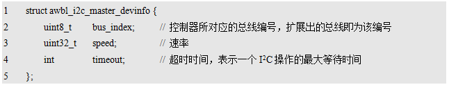程序清单12.4 struct awbl_i2c_master_devinfo类型定义(awbl_i2cbus.h)
