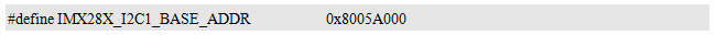 由此可见,I²C1设备的基地址为0x8005A000,该值可以从i.MX28x的用户手册中获得。