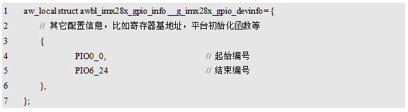 程序清单12.19 GPIO设备信息配置(awbl_hwconf_imx28_gpio.h)