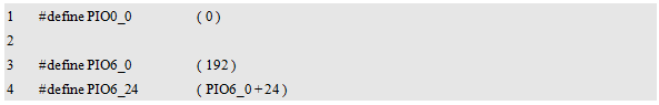 其中,PIO0_0 ~ PIO6_24为GPIO资源ID宏,它们的定义详见程序清单12.20。