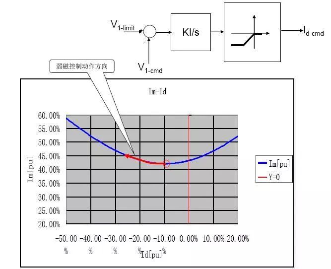 随着转速的不断升高,绕组中的感应电压幅值越来越高。 当直流母线电压一定时,绕组端电压的幅值有限。 这样,如果仍然根据MTPA等算法发送电压指令,绕组电压甚至低于感应电动势的电压, 这就会导致绕组中的电流不足,逆变器无法输送足够的功率给电动机。 为了解决这一个问题,有意在d-轴上增加负的电流,让绕组电压的相位超前感应电动势, 以保持输出到电动机的功率。这就是弱磁控制。 对于IPM电机来说,我们定义三种弱磁的“境界” 1)充分利用永磁扭矩和磁阻扭矩的MTPA算法。 2)直流母线电压一定条件下,保持输出扭矩恒定的“浅弱磁” 3)直流母线电压一定条件下,保持高转速和恒定输出功率的“深度弱磁”。