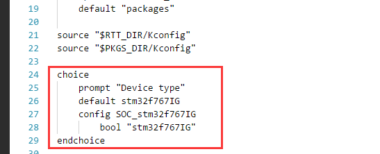 下面我们就装逼到底,让这个配置图变为STM32F767IGTx的专属。进入顶层目录(进入stm32f767-apollo文件夹内,以下均称“顶层目录”),打开Kconfig顶层kernel-config文件。 加上如下代码