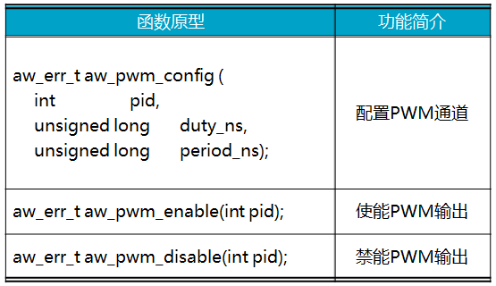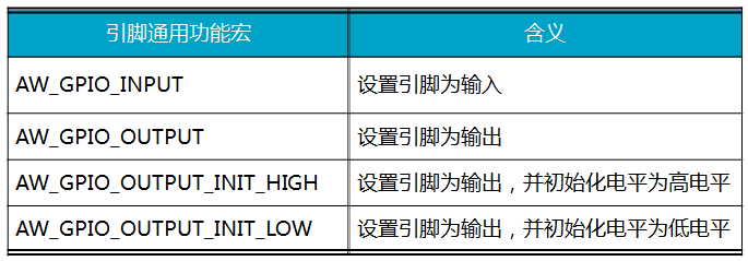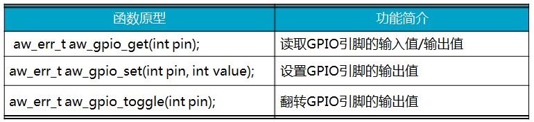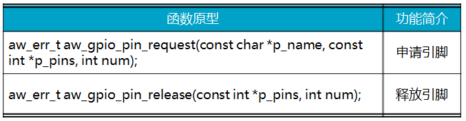 表7.5 引脚申请机制相关接口(aw_gpio.h)