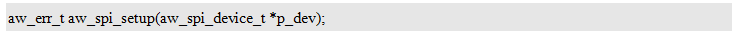 其中,p_dev是指向SPI从机器件实例的指针。返回值为标准的错误号,返回AW_OK时表示设置成功,否则,表示设置失败,存在不支持的位宽、速率或模式等。