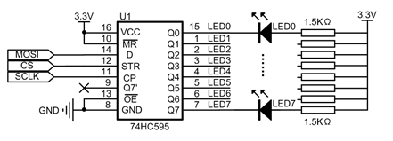 除基本的CP时钟信号、D数据输入信号、STR锁存信号、Q0 ~ Q7输出信号、Q7’输出信号外,还有