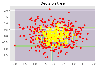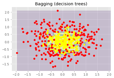 让我们看下bagging的实际效果,并与决策树比较下。我们将使用sklearn文档中的一个例子。