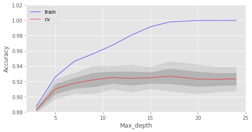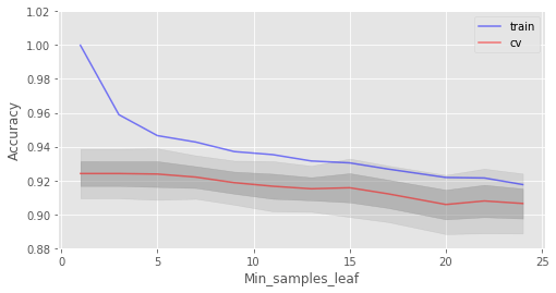 创建树,直到任何叶节点包含不超过nmin个实例,或者达到特定深度。
