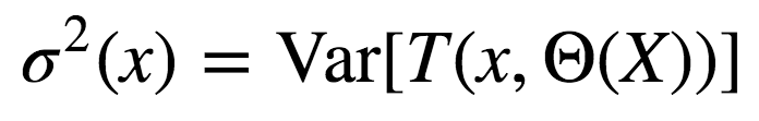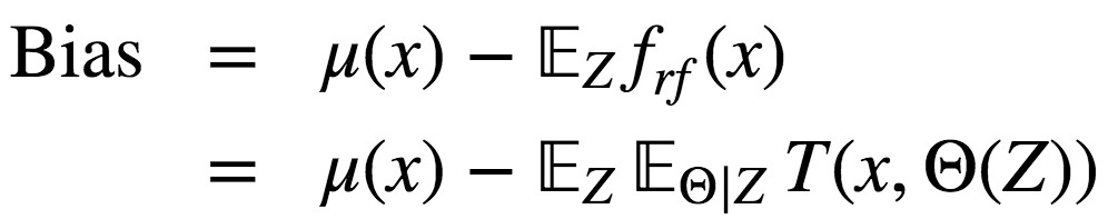 事实上,这一条件相关性并不和平均过程直接相关,p(x)的自变量x提醒了我们这一差别。p(x)是一对随机树在输入x上的估计的理论相关性。它的值源自重复取样训练集以及之后随机选择的决策树对。用统计学术语来说,这是由Z和Θ取样分布导致的相关性。