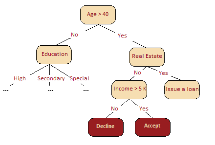 下图很直观地呈现了,在我们的信用评分问题中,年龄比收入更重要。基于信息增益这一概念,我们可以形式化地解释这一点。
