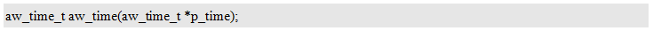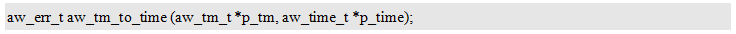 其中,p_tm作为输入参数,指向待转换的细分时间;p_time为输出参数,用以输出转换的结果(日历时间)。函数返回值为标准的错误号,返回AW_OK时表示转换成功,其它值表示转换失败。