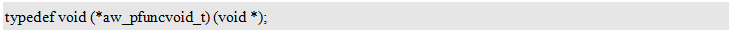 其中,p_timer为指向使用aw_timer_t类型定义的软件定时器实例的指针,p_func指向本次注册的回调函数,当定时时间到时,系统将自动调用p_func指向的函数(注册回调函数),回调函数的类型为aw_pfuncvoid_t,该类型是AWorks中定义的函数指针类型,其具体定义(aw_types.h)如下: