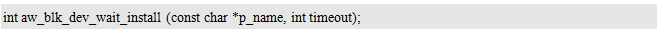 该接口是用于等待一个块设备准备就绪,常见的U盘、SD卡、TF卡等都属于块设备(即在物理操作上,数据是以块为单位,比如:512字节,进行数据的写入和读取的,而不是以单个字节为单位)。其中p_name为设备名,例如,"/dev/sd0",timeout用于指定超时时间(单位为系统节拍)。