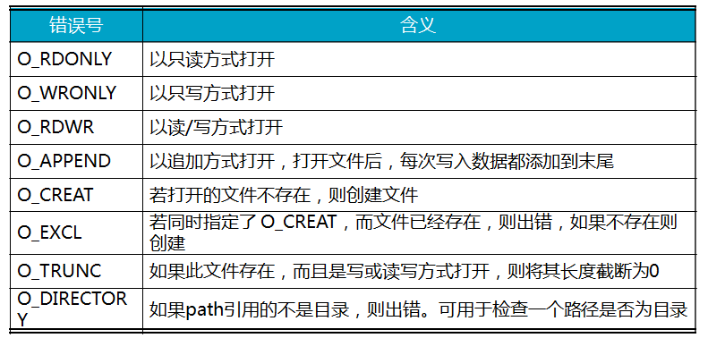 oflag指定打开文件的方式,当前支持的打开方式详见表11.3。