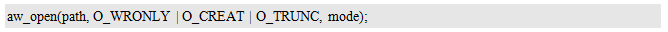 由此可见,其是以只写方式打开文件的,若文件不存在,由于使用了O_CREAT标识,则创建文件,若文件已穿在,由于使用了O_TRUNC标识,则会将原文件的内容清空,长度截断为0,相当于创建了一个新文件。