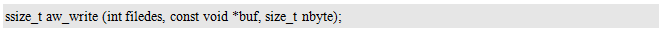 其中,filedes为文件句柄,buf为待写入数据的缓冲区,nbytes为写入数据的字节数。返回值为成功写入的字节数,特别地,若返回值为负值,则表示写入数据失败,可能是由于打开文件的方式不对造成的,例如,打开文件时,使用了只读的方式打开文件;若返回值小于nbytes,则可能是由于存储设备容量不足造成的。