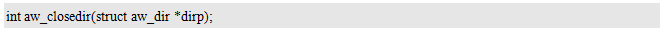 其中,dirp为指向目录对象的指针,可通过打开目录获得。返回值为AW_OK时表示关闭成功,否则,表示关闭失败。