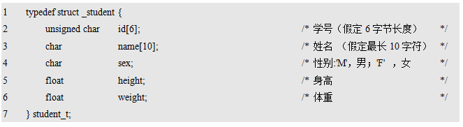 一条记录包含学号、姓名、性别、身高、体重等信息,可定义与学生记录对应的结构体类型,详见程序清单11.26。