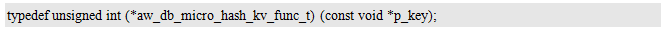 pfn_hash用于指定一个哈希函数,其作用是将关键字转换为一个哈希值,哈希值即为哈希表的索引。其类型aw_db_micro_hash_kv_func_t定义如下: