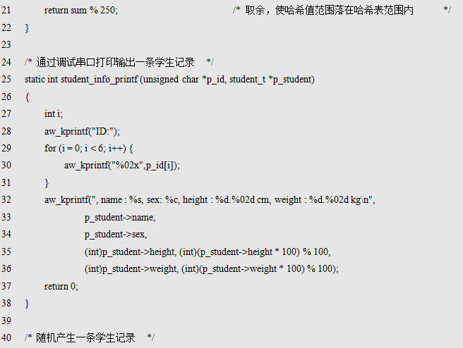 程序中,为了避免使用aw_kprintf()打印浮点数,将身高和体重分为整数部分和小数部分打印,最终等效于保留2位小数的浮点数打印效果。