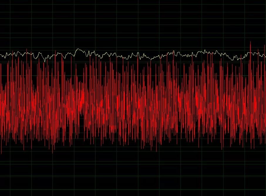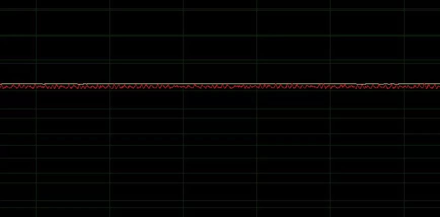 后来,将波形放大观看,如图4。发现目标速度黄线在大概2%的范围内波动,实际速度红线跟着这个波动。但是这个是无感FOC系统,电机速度的测量精度有限,硬件上实在没办法做到2%以内的测量误差。目标速度波动了一点,ADRC就跟着调节一点,但输出控制量太大了,导致电机速度在大范围内波动。