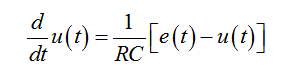 在周立功ADRC软件库中,第一步就是用软件低通滤波器,滤除不合理的目标值。软件低通滤波器的设计,我们先从模拟电路分析。图5是最简单的RC一阶滤波器,e(t)和u(t)分别是滤波器的输入电压和输出电压,电阻的阻值是R,电容的容量是C。