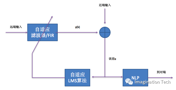 b) 远端输入经过自适应FIR滤波器后就得到了近似于近端输入的数据,并与近端输入相减后得到了误差e。误差e作为自适应LMS算法的输入在需要的时候去更新自适应FIR滤波器的系数给后面远端数据处理用。在需要的时候是指远端talk近端silent的情况,其他情况(比如double silent / double talk)下不需要更新FIR滤波器的系数。