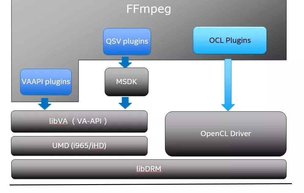 在Windows平台,如果你想在Intel 平台上执行编码相关的事务, Media SDK基本上是唯一的选择。当然,如果你更偏向FFmpeg的API,可以使用FFmpeg QSV/Media SDK的方式;而在Linux平台,FFmpeg VA-API与FFmpeg QSV/Media SDK 接口大部分功能重合,更多的区别可能在于软件灵活度和开放程度的考量。一般说来,FFmpeg VA-API提供了更大的灵活度,对于有开发能力或者想二次定制的客户更加的友好一些。从FFmpeg的角度看,这两者在FFmpeg框架内的最大不同点在于: FFmpeg VA-API是以Native CODEC的方式直接实现与FFmpeg内部,而FFmpeg QSV集成Media SDK的方式,非严格的类比则类似于FFmpeg 集成libx264 这样第三方库的方式,需要依赖Media SDK,而FFmpeg VA-API则并不依赖第三方的库,其CODEC的实现直接位于FFmpeg代码库自身。另外,需要提及的另外一件事情是,Media SDK开放了部分功能,其代码Repo在:
