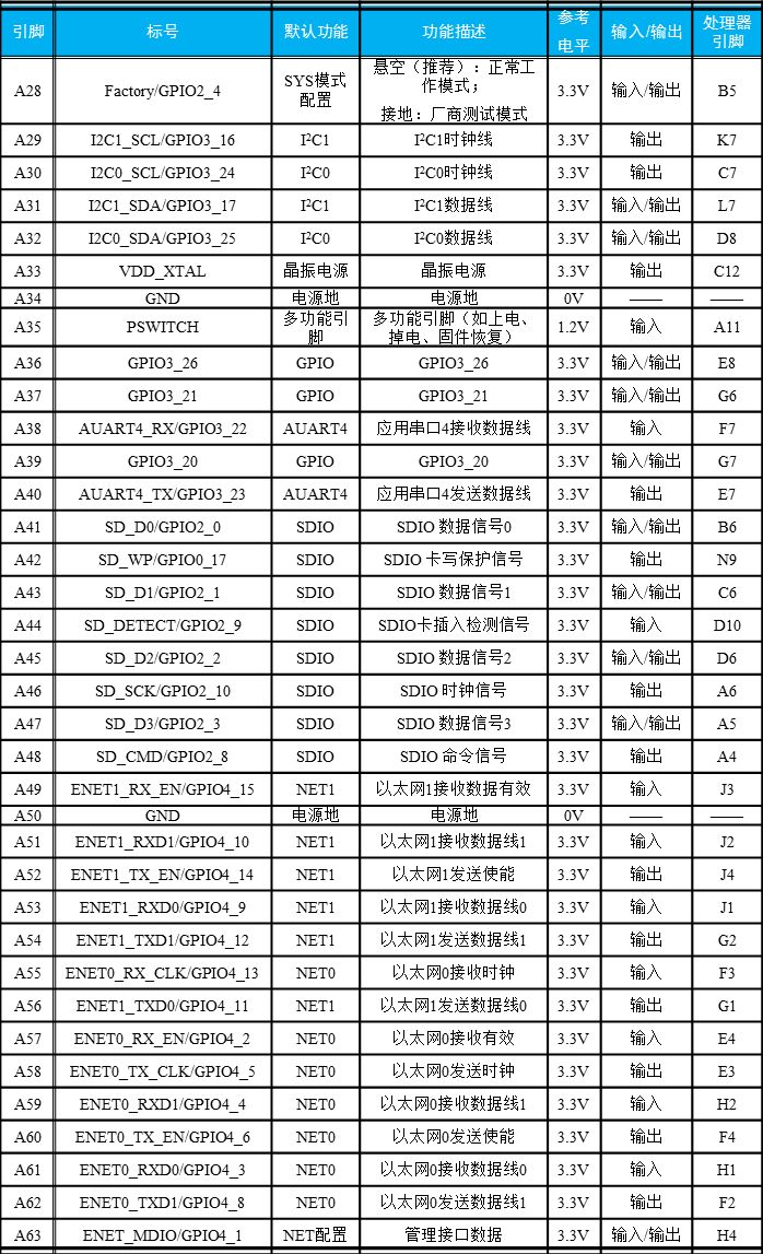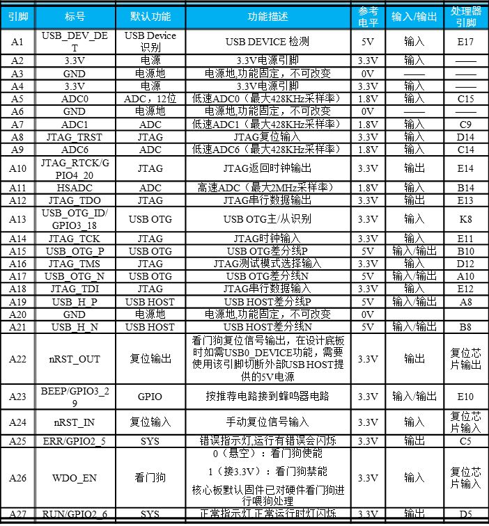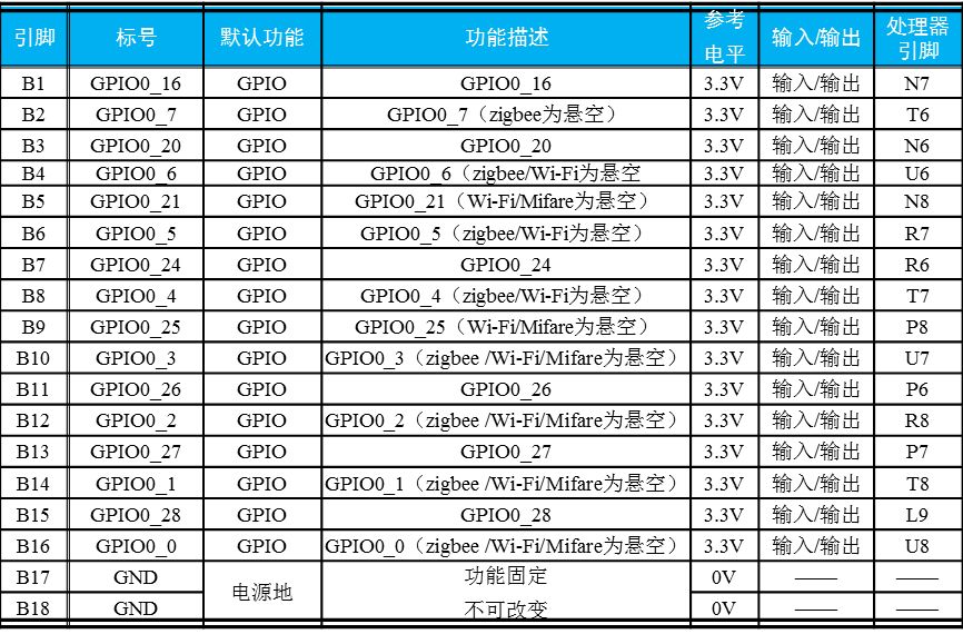A287系列无线核心板为了配合标准驱动软件开发,产品出厂时的固件为I/O设置了默认功能,如果需要更换管脚功能属性时,用户可以参考手册,认真了解驱动架构,并在提供的BSP 开发包基础上自行修改驱动,适配自己需要的功能。配置完后,需要检查每个管脚配置是否正确,避免驱动冲突情况。