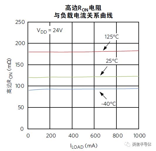 图3. MAX14914导通电阻与负载关系曲线