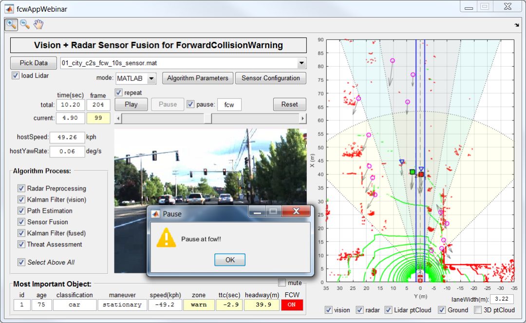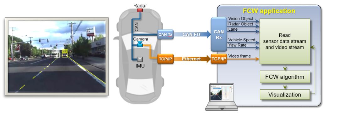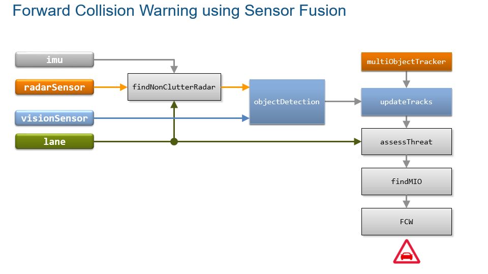 MATLAB 自带了前向碰撞告警(FCW)例子可以帮助用户理解传感器融合的使用。