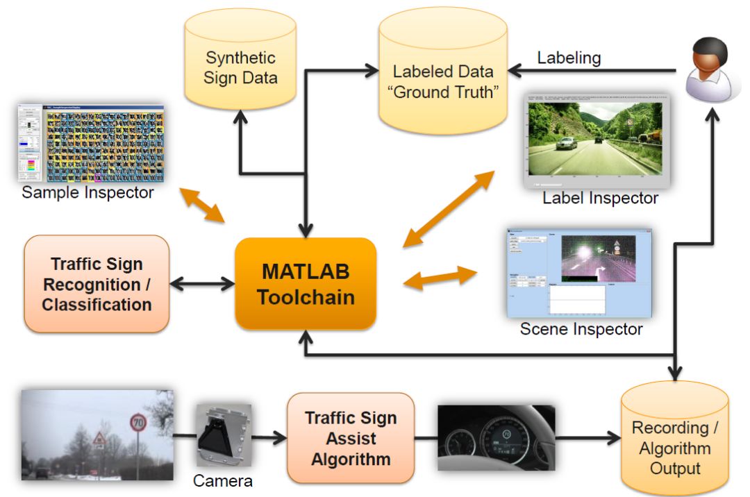 还有一家公司——德国大陆集团(Continental)——用 MATLAB 也是炉火纯青。MATLAB 既然是好工具,我就用工具来代替大量人工重复劳动。2014 年,Continental 在研发一款自动驾驶摄像头的时候,使用 MATLAB 来自动化标注物体和道路标志,这些自动化的方法显著地提高了摄像头的机器学习效率。这一灵感也最终由 MathWorks 工程师实现在 ADST 的功能中:GroundTruth Labelling (真值标定)。