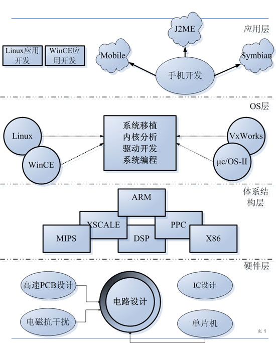硬件层比较适合于,电子、通信、自动化、机电一体、信息工程类专业的人来搞,需要掌握的专业基础知识有,单片机原理及接口技术、微机原理及接口技术、C语言。