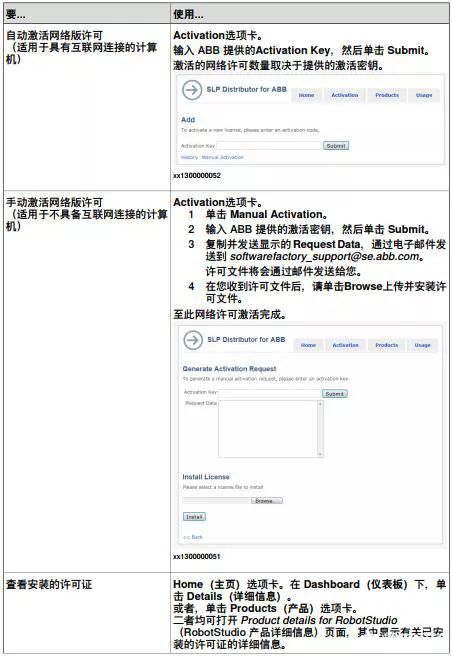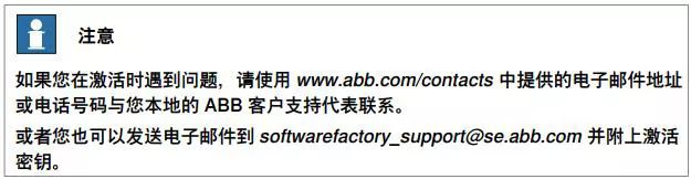 使用移动存储设备(如 U 盘),将该文件传送到具有互联网连接的计算机。在这台计算机上,打开网络浏览器,进入http://www101.abb.com/manualactivation/,并按提示操作。最后用户将获得一个许可密钥文件。请保存此文件,并将它传回等待激活本软件的计算机上。