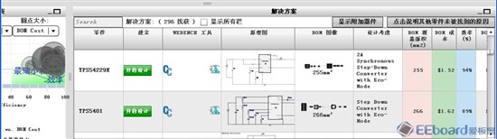 点击绿色按钮【重新计算】后,生成了296个芯片方案,在方案中,找到TPS54229E这个方案,如图: