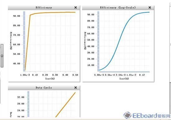 而利用TI WEBENCH平台得到的芯片方案中,效率图表如下:
