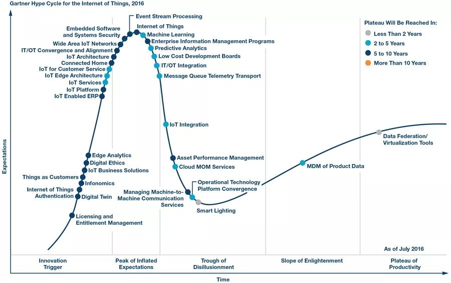 这种改善测量与报告的需求使得优质硬件至关重要。近期的Gartner报告持同样观点。报告认为低成本物联网开发板正快速进入泡沫破裂的幻灭期(trough of disillusionment)。这可能是由可用的低成本开发平台的数量过多造成的。但是,我认为这更可能是由于我们更加关注更具挑战性的物联网应用,它们更具实际经济价值。这些应用所依赖的数据结果,粗略测量根本无法支持。