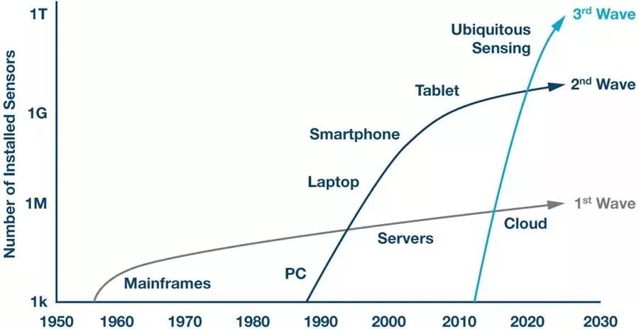 云计算通过大量传感器初步读数间的这种联系,并根据时间、位置和其他传感器将各种不同的传感器读数相关联,从中获得见解。这包含两部分:检测数据变化的能力(例如,机器性能的漂移),以及创建现实物体(如电机)或系统的一个软件模型“数字孪生”的能力。这些数字孪生可用于主动修复设备或规划生产流程。这是对未来几年传感器爆炸式增长的部分展望,也是将软件和服务货币化的能力。