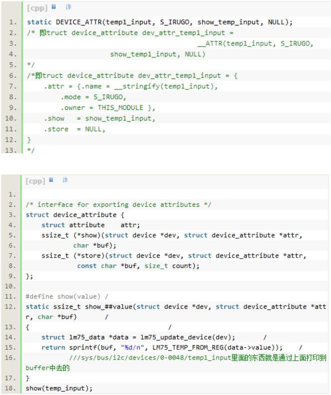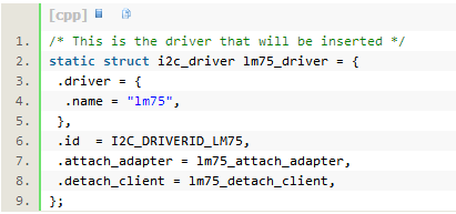 看lm75.c的代码,发现此温度传感器用的是I2C的总线。代码中看到i2c驱动的接口定义如下,和以前做过的字符型驱动的接口不一样。
