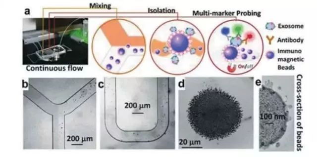 a)这三种肿瘤生物标志物的含量及其稀少,且存在肿瘤异质性,使得对其分离和纯化非常困难。克服这一挑战,需要开发充分利用肿瘤生物标志物的物理学与生物学特性相结合的微流控平台。