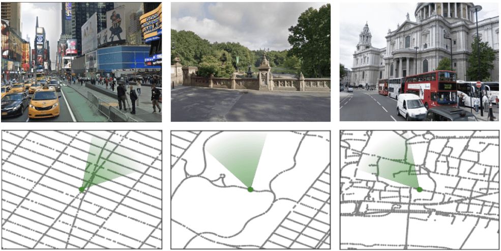 数据来源于真实街景。从左至右分别为纽约时代广场、中央公园和伦敦圣保罗大教堂