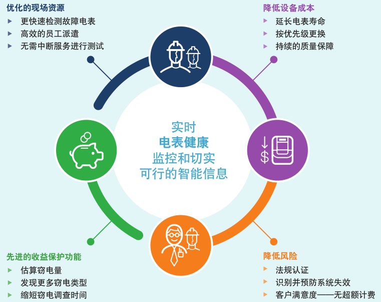 在全球范围内有数百万只使用中的电表受到窃电行为影响,并造成高达每年数十亿美元的窃电损失,这为电力公司通过直接和实时监控每个电表的健康状况,降低成本、减少窃电并改善运营提供机遇。