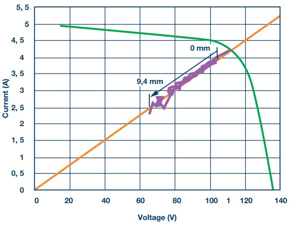 TÜV的进一步研究显示了MPPT跟踪器中相同大小的间隙引起的工作点偏差。结果再次表明MPPT性能大幅降低。