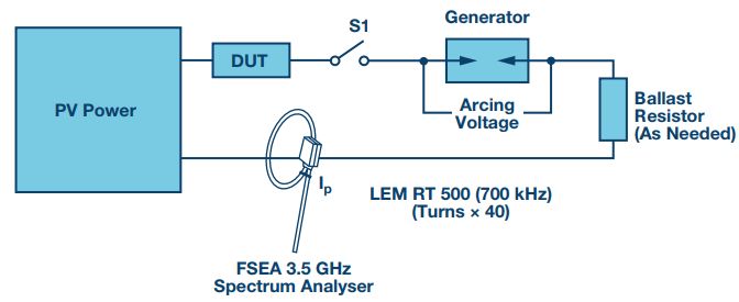 光伏电源系统与一个电弧发生器和一个1 Ω的镇流电阻串联,形成测试系统设置的基础。对通过系统的电压和电流进行分析,以探索可能的检测机制。