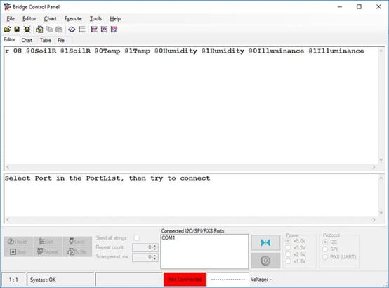 Bridge Control Panel允许用户使用I²C协议与相关应用设备之间双向接收/发送数据。数据可用于绘制数据图表或存储到文件。