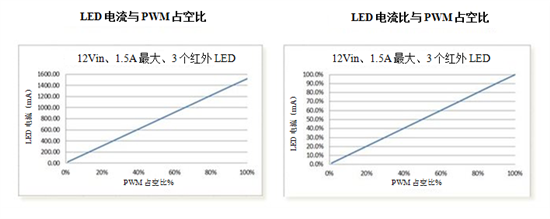 图3:LED电流与PWM占空比的100%线性度