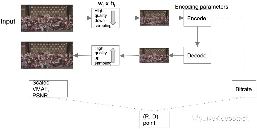 图5:使用一组参数如分辨率和QP对一个shot进行编码,并获得一个单独的(R,D)点。