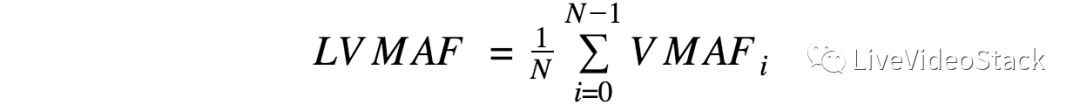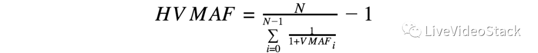 就时间聚合而言,我们实施了各种池化方法,其中两种方法对应于前面已介绍的质量与失真映射,即线性和反比例映射。 我们称它们为算术平均平均VMAF(LVMAF)和调和平均平均VMAF(HVMAF)。