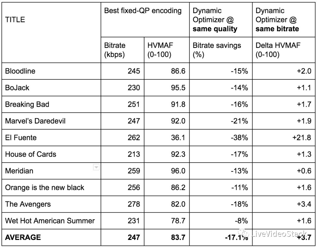 这个完整的系统被称为“动态优化器”,该框架产生了Netflix最新一代的编码。
