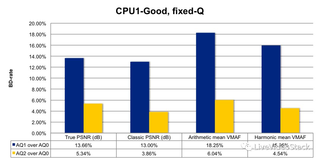 图11:VP9-libvpx编码中AQ-mode = 0/1/2的作用; AQ-mode = 0效果最佳(摘自2016年10月Netflix的“Open House on Royalty Free Codecs”的 “VP9 Encoding Opportunities @ Netflix”演示文稿)